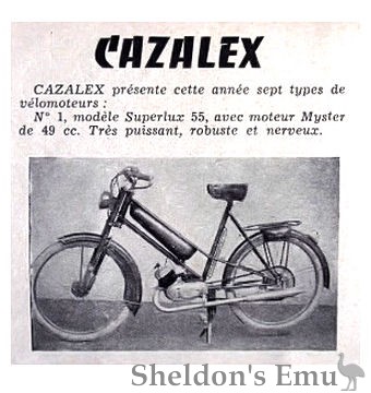 Built lightweight motorcycles and mopeds using 49cc and 124cc engines. Their Superlux 55 velomoteur was powered by a 49cc Myster.