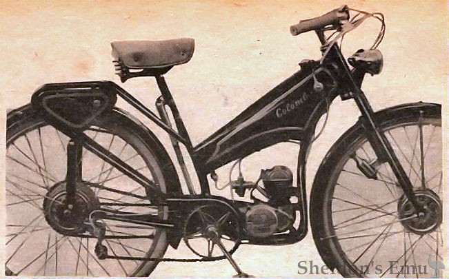 Société Colomb of Bagnolet, Paris, built lightweight motorcycles and scooters. At the Salon de Paris of 1950 they presented a 2-speed 50cc two-stroke with a cradle frame and suspension front and rear. Although the engine was claimed to be of their own manufacture, other machines from the same year were fitted with VLT engines.
