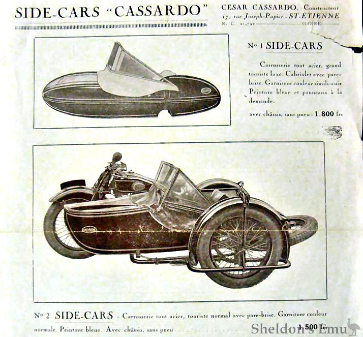 Based at 6 Rue Ceccaldi in St Etienne, Cesar Cassardo built sidecars in the 30s until at least 1935.