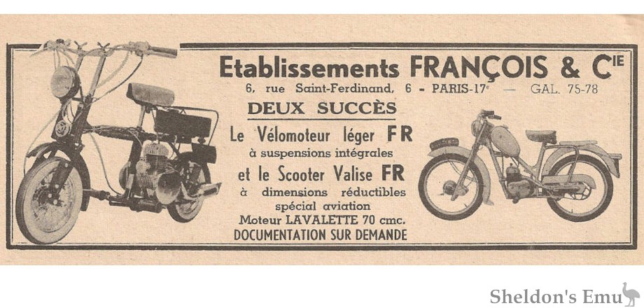 Advertised Le Cyclomoteur Flamand 49cc in 1951, also 85cc Le Poulain in 1951.