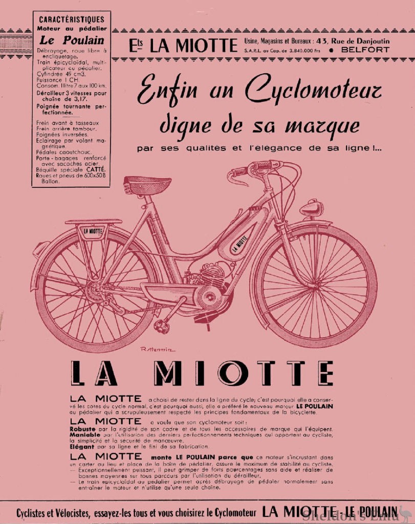 43, Rue de Danjoutin Belfort. Advertised mopeds powered by La Poulaine in the 1950s. The firm is believed to have also built bicycles.