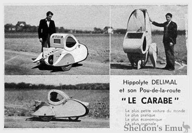 Powered by a Motobecane 175cc engine, this unique 3-wheeled microcar was built by Hippolyte Delimal in just 8 days in 1936 and was claimed to be the world's smallest car.
