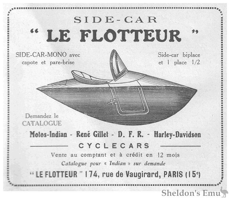 Le Flotteur, 174, rue de Vaurgirard, Paris (1924). Sidecar manufacturer.