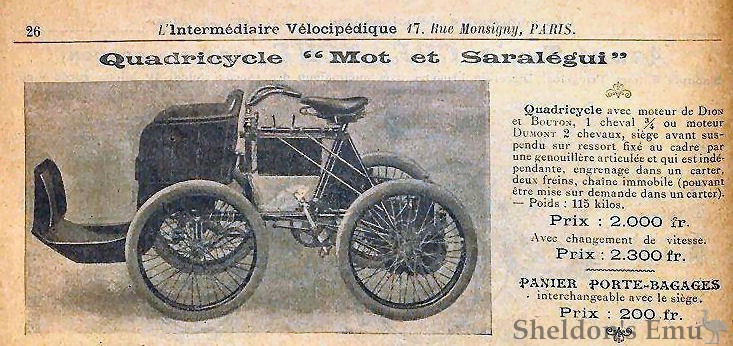 Mot-Saralegui Quadridycle c.1900, de Dion et Bouton moteur.