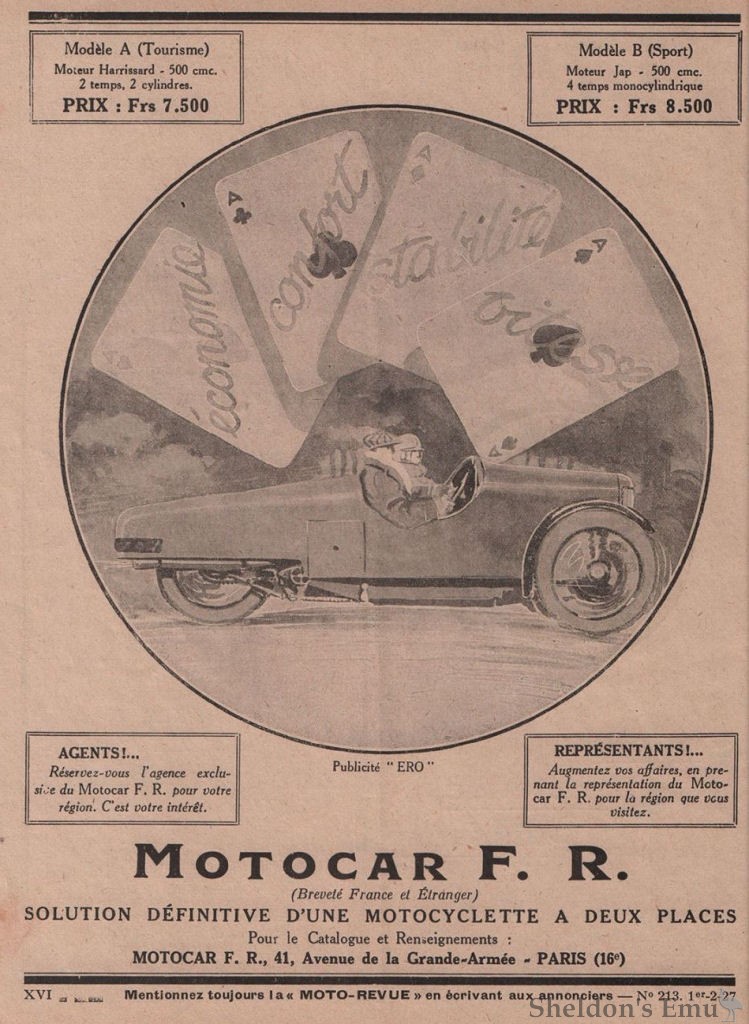 MOTOCAR F. R., 41, Avenue de la Grande-Armée PARIS (IF)