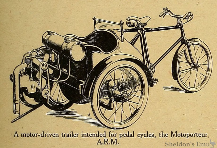 A motor-driven trailer intended for pedal cycles, the Motoporteur. A.R.M.