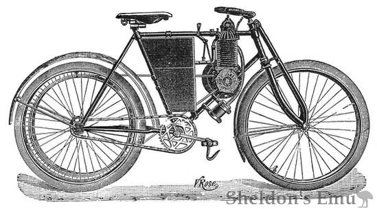 Presented at L'Exposition Universelle of 1900, his machine was a tricycle with a De Dion engine mounted forward of the front axle.