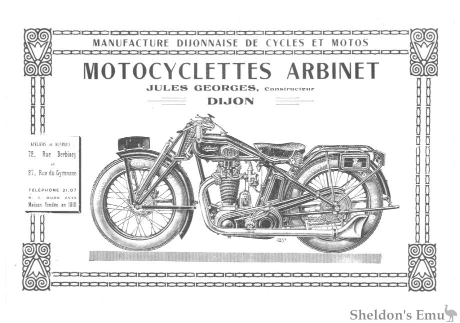 In 1928-1929 advertisements and catalogues appeared for Arbinet stating that Jules Georges of 72, rue Berbisey et rue du Gymnase, Dijon, was "Successeur".