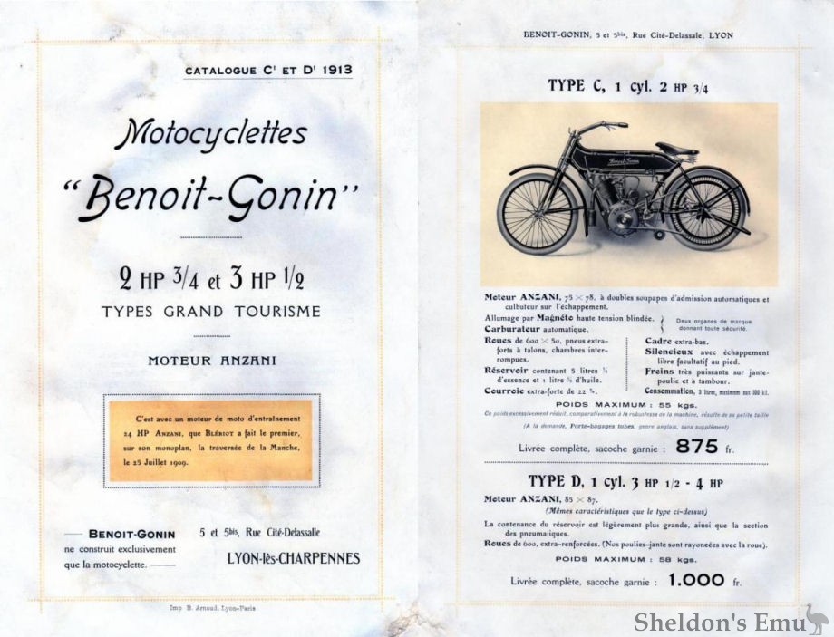 Following the armistice there were a good many war surplus machines on the market - HD and Indian from America, and BSA, Triumph and Douglas from the UK - making it almost impossible for the tiny Lyon factory with 12 staff producing two machines per week to remain viable, so in 1924 Benoît-Gonin ceased motorcycle manufacture and returned to his previous activities as a watchmaker and jeweller.