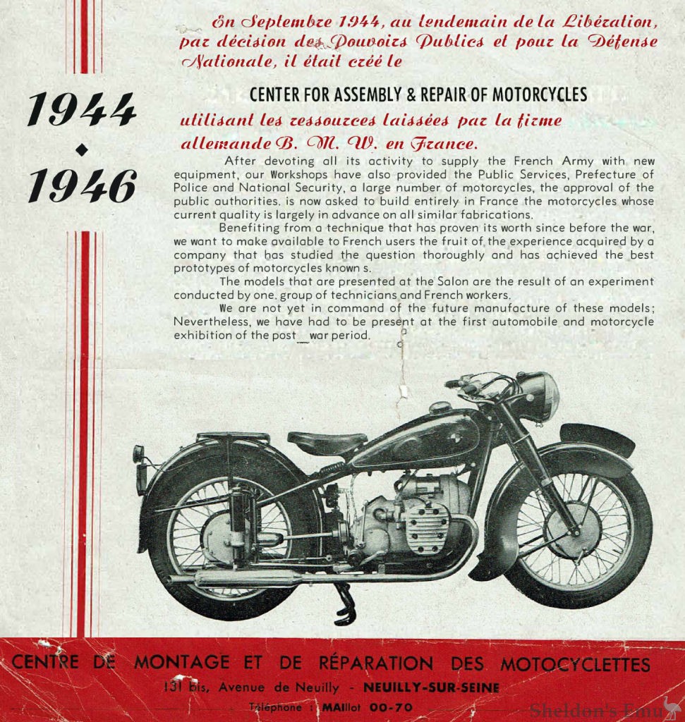 Built motorcycle sidecar combinations and solos after the war from BMW parts in a German warehouse in Paris, using mostly BMW R 12 and R 71 engines.