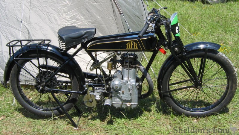 D.F.R type SS32 500cc twin, four-stroke, 3-speed gearbox (very similar models were released by both DFR and Dresch)
