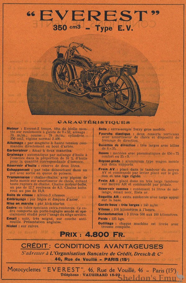 Models: Type E.V. 350cc two-stroke. 79x70mm B/S, Amac carburettor, chain-chain, Albion 3-speed gearbox.