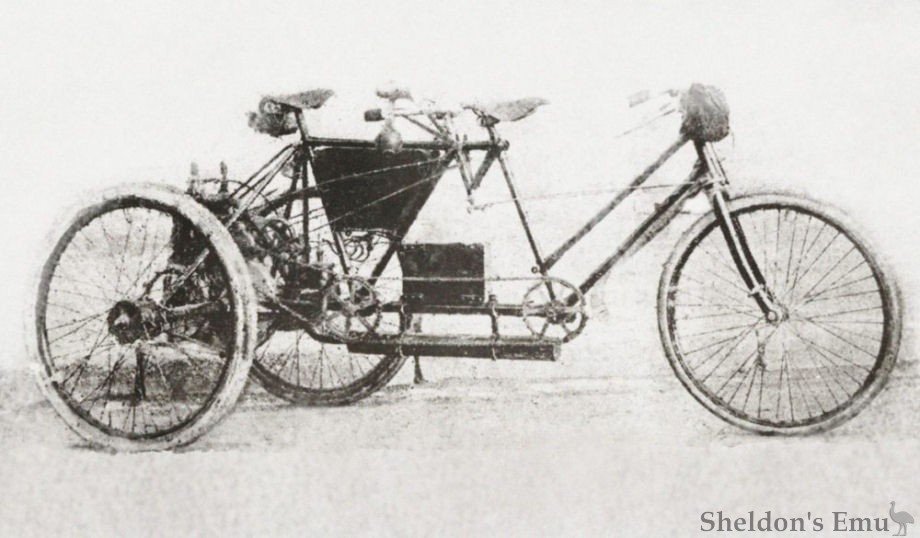 In 1896 a Grivel tandem tricycle competed in the Paris–Marseille event and suffered an accident. It was powered by an air-cooled, horizontal twin-cylinder petrol engine rated at 2 h.p.