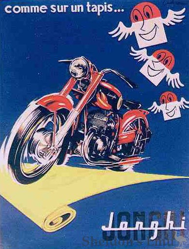 By the early 50s motorcycle manufacturers in France, as in Italy, were besieged by the success of lightweight cars - the Citroen 2CV in France, and the Fiat in Italy. Dozens, hundreds perhaps, of smaller motorcycle factories folded, among them Jonghi. They ceased production in 1957.