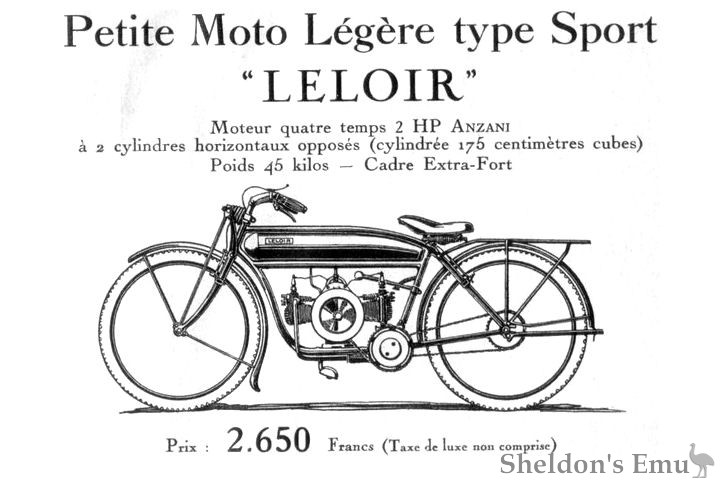 Built 247cc two-strokes similar to the Evans, a 174cc two-stroke boxer twin in 1922, and a 2-speed 175cc two-stroke single which was presented at the Paris Salon of October 1924.