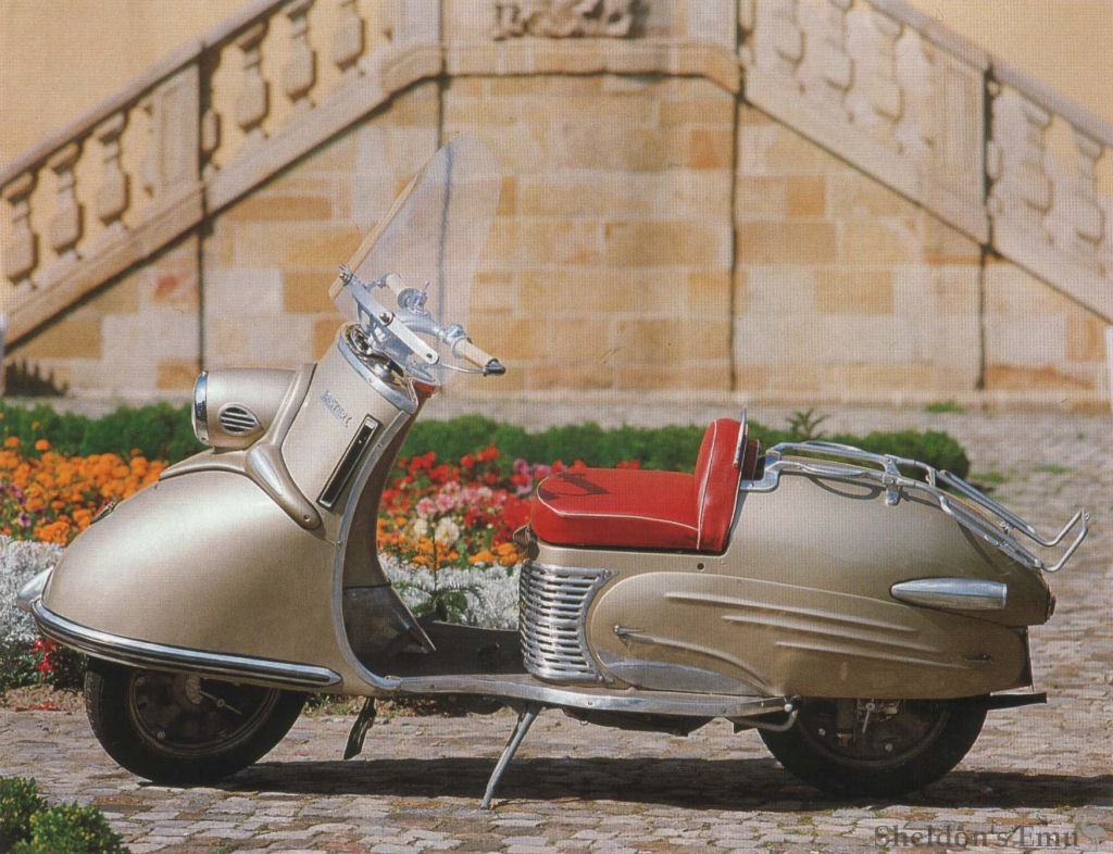 Louis Lucien Lepoix (1918-1988) worked with many companies in Germany during the reconstruction, creating such marvels as the FTI BMW, along with projects for Horex (Rebell), Progress, Puch (M125 and SR150), Bastert (Einspurauto) and Walba. Others were the Triumph TWN Contessa, Victoria Nicky and Swing, Kreidler Florett and Steib LS200 sidecar.