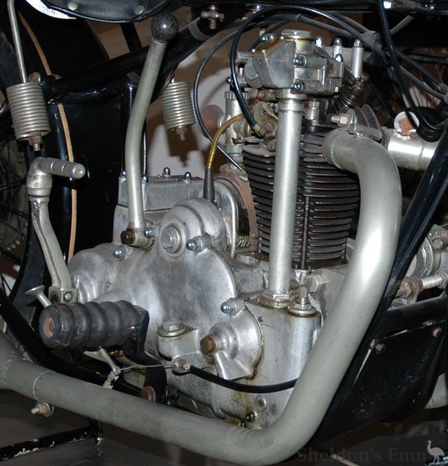The Chaise 500 was a unit-construction OHC 490cc (87.7 x 85 mm) with dual exhaust ports, wet sump and three-speed gearbox. A beautiful engine, but it weighed over 50kg.