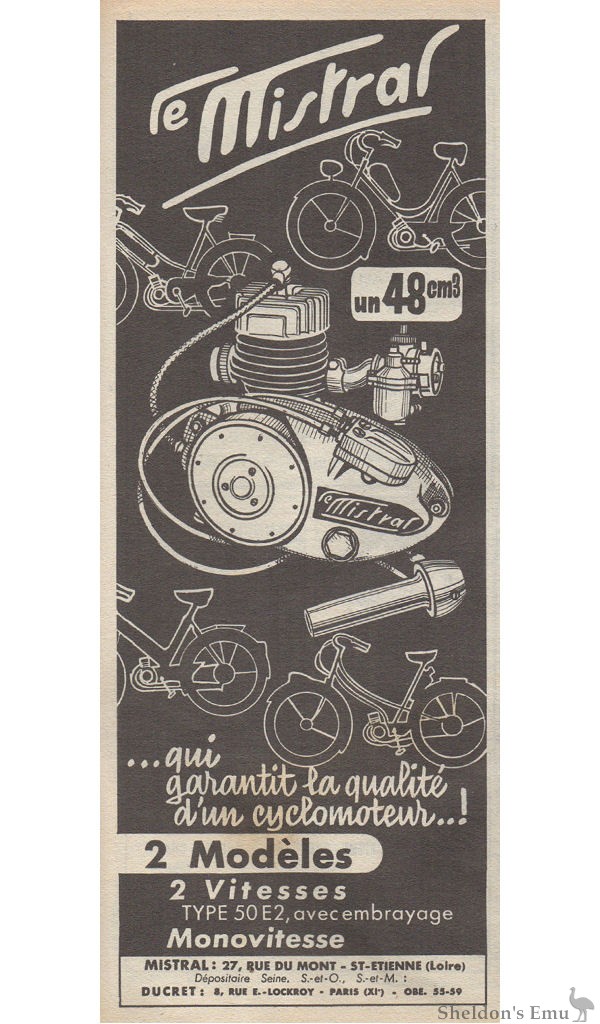Founded in 1952 by Ets Gravelais, Boudol et Cie, the firm built two-stroke engines of 48cc to 110cc. Winsmith of Finchley, London was the British importer.
