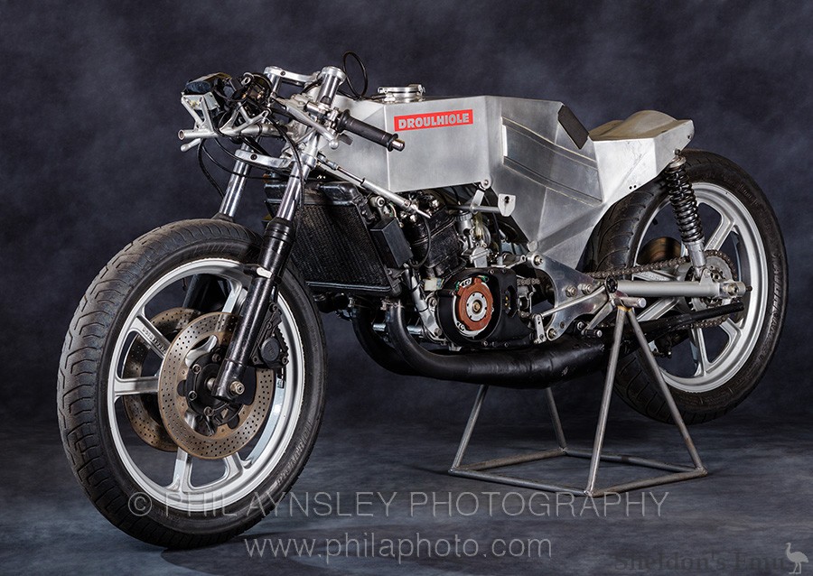 Built in 1974 by Bernard Droulhoile who worked with the French Yamaha importer Sonauto, the Moto Moraco was based on the TZ250/350 using a monocoque frame and an enlarged engine. It was campaigned by Christian Bourgeois and Patrick Pons in the 500cc GP.