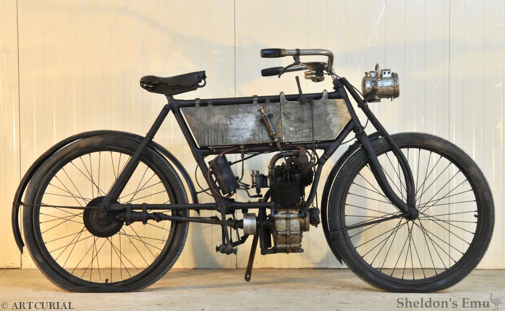 It is understood that the motorcycle (or perhaps just the drive train) was exhibited at the 5th International Automobile Exhibition in December 1902.