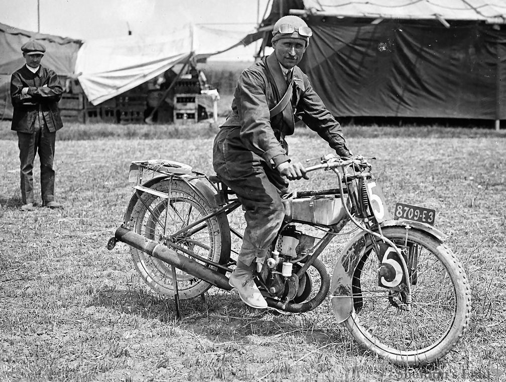 The image shows a 250cc M.S. motorcycle as raced by Sandford in the June 21 1921 Grand Prix de France, which he won. M.S. may mean Moto Sandford. The official records for the race state that the motorcycle is an MS-Train. [1]