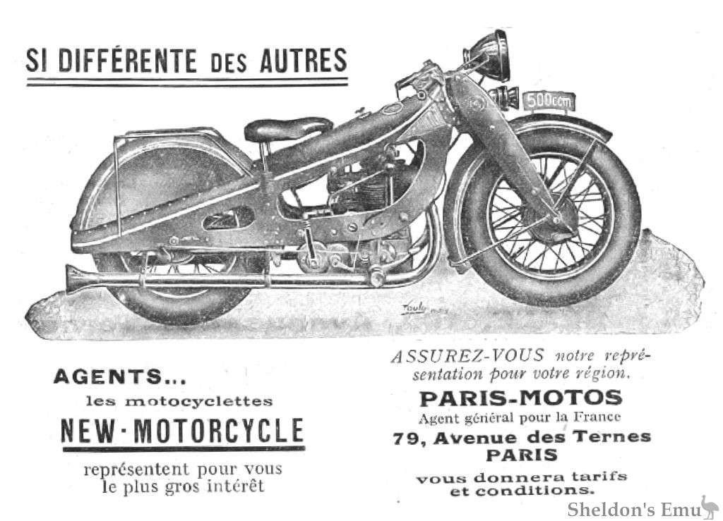 Pre-production machines were fitted with Train two-strokes which were replaced in the motorcycles offered for sale with JAP (or Anzani) and Chaise 500cc OHV engines, and possibly also MAG. The frames were pressed sheet steel, pre-cut and then bolted and riveted together. The idea was quite revolutionary at the time (although previously in use by Lutece and Janoir), and was widely adopted by other manufacturers in later years.