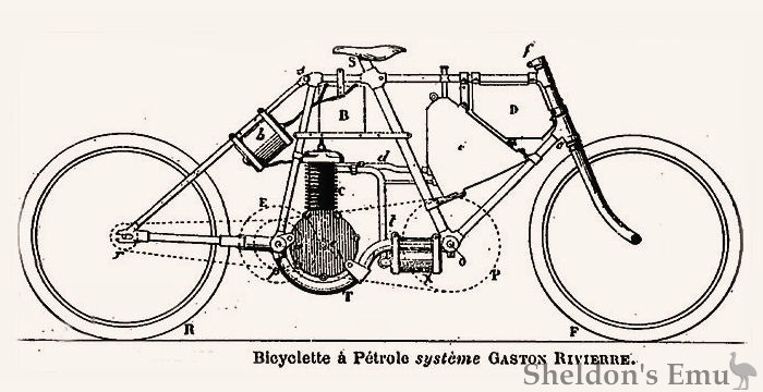 Etablissements Automotrice Rivierre was the firm established in 1896 by cycling champion Gaston Rivierre, one of the pioneers of motorcycling. He and his friend Léonce Girardot patented a motorcycle in 1897 and presented a machine powered by De Dion-Bouton at the 1898 Paris Salon. It is believed these motorcycles were built in the workshops of Charron, Girardot and Voigt (CGV) in Paris, who in 1904-05 were the French agents for Evart-Hall.