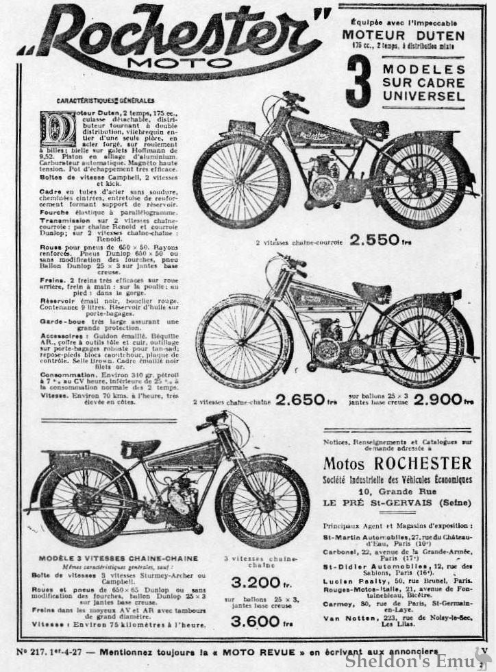 Three models were offered in 1927, a 2-speed belt drive, a 3-speed belt drive, and a 3 speed chain drive.