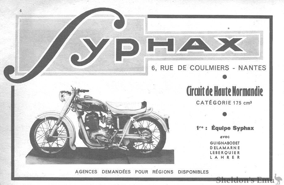 Manufactured by Société des Cycles et Motos Syphax, 1952-1953