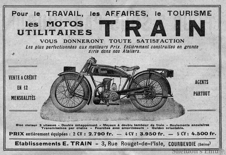 Louis Émile Train began his career as a mechanic in his father's workshops in Saint-Étienne and became familiar with the workings of sewing machines, bicycles, motorcycles and automobiles. He then began building and flying aeroplanes, but gave the new venture away after an accident in the Paris-Madrid race of May 1911 resulted in several injuries to his person and the death of the Minister of War, Maurice Berteaux. He resumed his motorcycling activities, and in 1914 purchased the Lurquin & Coudert firm.