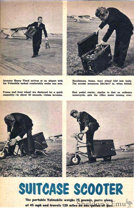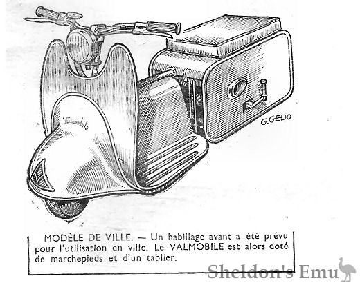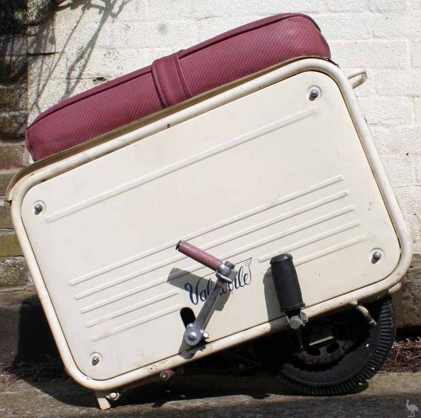 Built in France by Victor-Albert Bouffort in 1952, the Valmobile was initially marketed with a sporty 125cc Briban Sabb engine, and was said to have seated two comfortably. It included a trailer hitch. It is likely that a prototype was built with a 60cc Alter engine, and this was replaced with a Villiers 98cc unit.