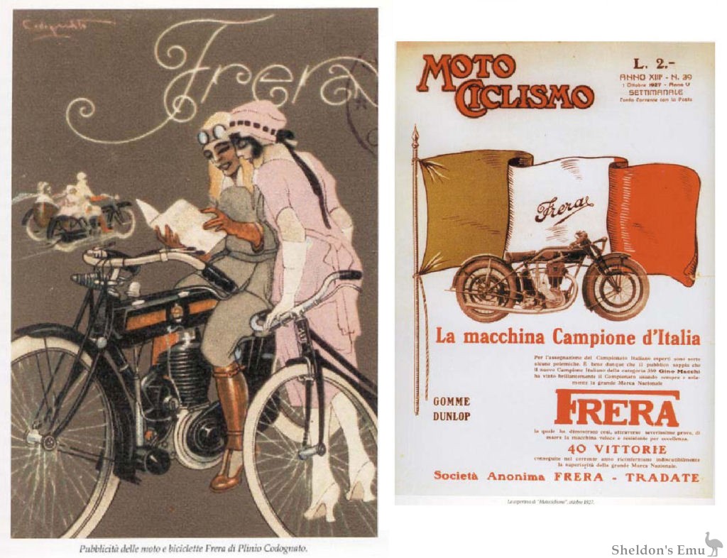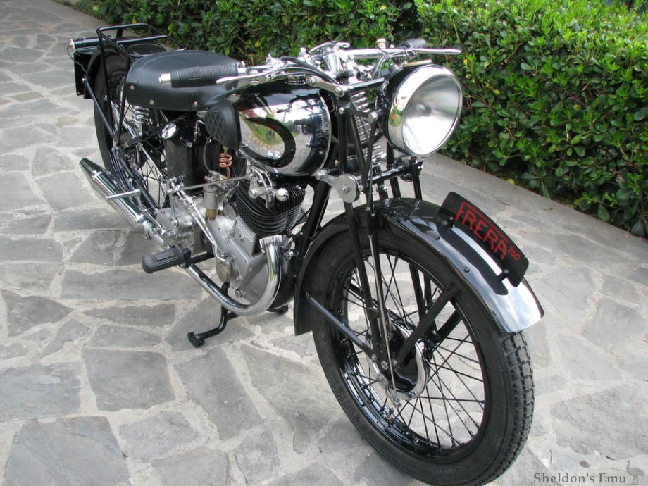 The new management decided to abandon the construction of bicycles and concentrate everything on motorcycles, building sidevalve 175, 250 and 500cc models. These engines were sold to RAS, Osculati and others. In 1935 the new 4 speed 250cc and 500cc overhead valve high-cam engines were redesigned by the engineer Giuseppe Merosi, but in 1936 Frera finally closed.
