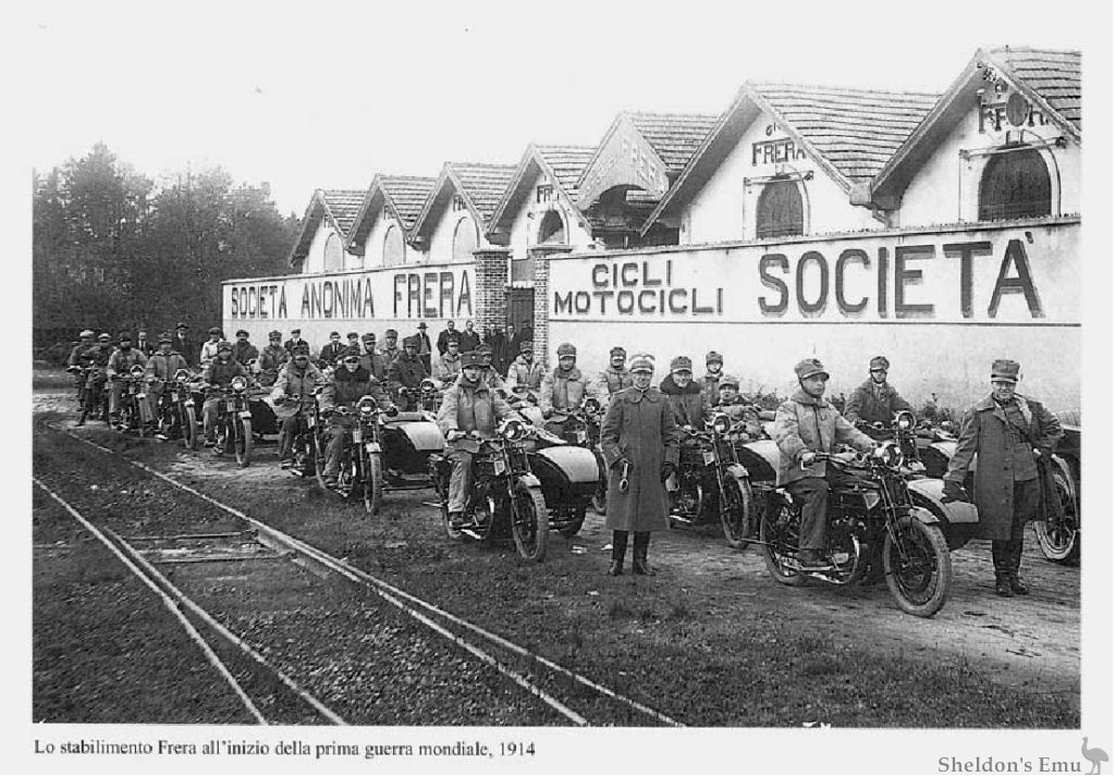 In 1910 the factory output was 1,200 motorcycles and that figure increased to 3,000 units by 1915 making Frera the most important Italian motorcycle factory. By this time the engines were manufactured in-house, built to the Zedel design under licence.