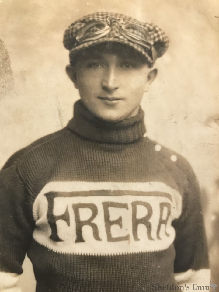 Lubrication is mechanical with a special Frera pump and an additional foot pump. The gearbox is a three-speed Frera patent, separated with hand control. The dry clutch is operated by handlebar lever, and the transmission is entirely by chain. The very stable tubular frame has front suspension with a parallelogram fork and two Frera-patented springs, and a rigid rear end. The handlebars have a double attachment. The brakes are rimless on both wheels.