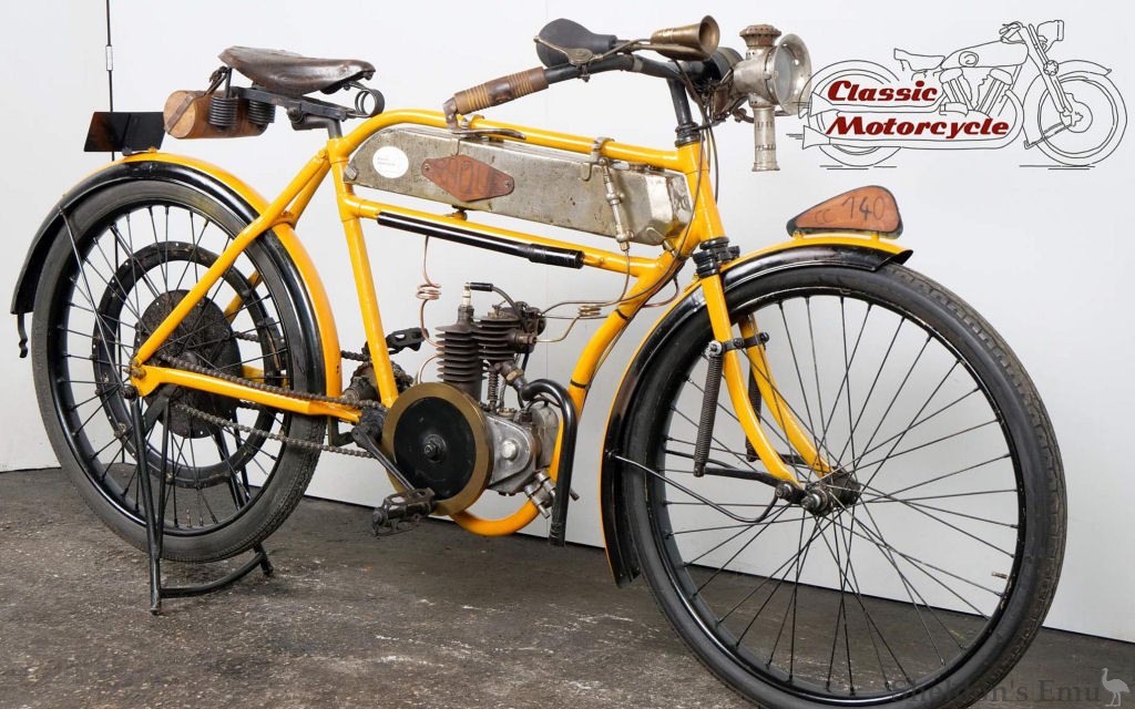 Under the management of Walter Zekeli, in the years 1924 to 1926 or '27 the firm built motorcycles with JAP 500cc sidevalve and OHV singles, and MAG V-twins. A 1925 brochure shows Sportmodell 498ccm OHV and Tourenmodell 498ccm SV. These machines had a Sturmey-Archer 3-speed gearbox, interchangeable wheels, Bosch magneto, chain drive, drum brakes front and rear, and a 12 litre saddle tank.
