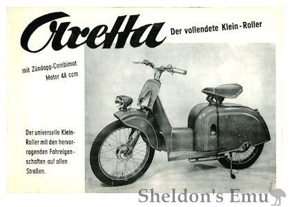 Powered by a Zundapp 48cc engine, there is very little information available about this scooter other than a sales leaflet from 1954 which reads "MEGA Kleinroller Gebr. Mühlbacher Augsburg, Frauentorstr. 53"