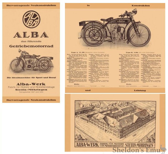 Alba-Werke GmbH, Stettin-Möhringen 21, Pasewalker Kunstst 1, 1918-1926