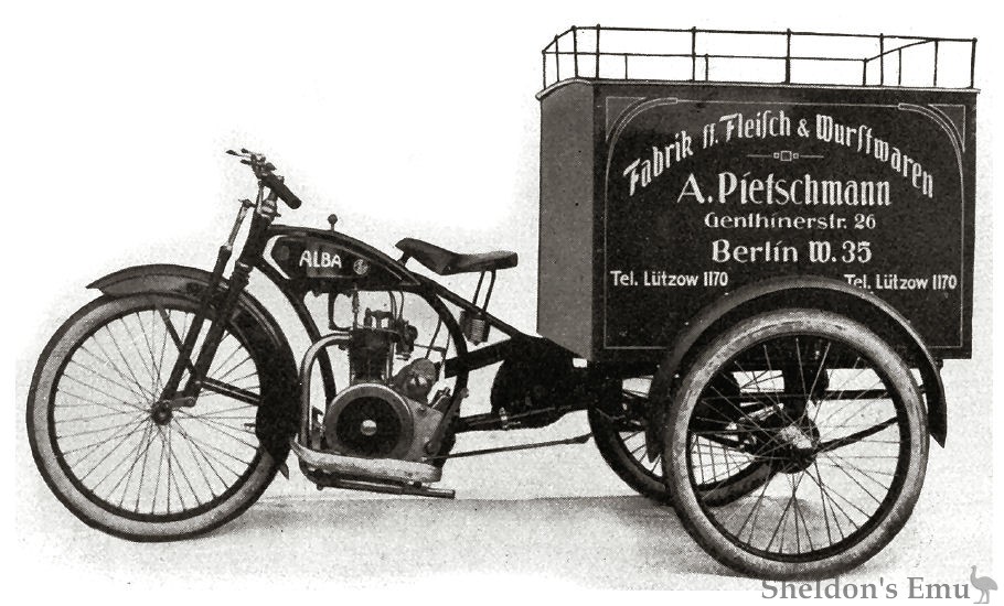 From 1919 they built motorcycles using four-stroke 198, 247, and 249cc engines of their own construction. These engines were used by Huy, Mazzucchelli, Teco, Raakete and other manufacturers. They offered a three wheeled van (Lastendreiräder) with a 195cc engine which was licence and tax-free in the years 1925 to 1926.