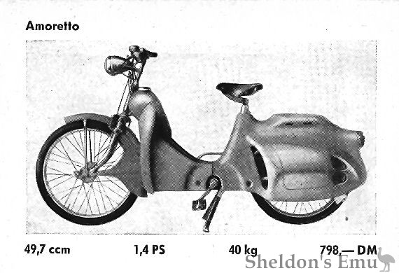 The company also built 50cc two-stroke mopeds which in 1951 were named the "Amoped" and another around the same time named Amoretto.