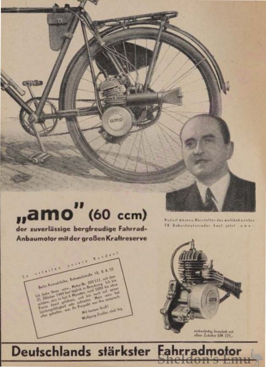 Manufactured by Amo-Motoren-Gesellschaft mbH, Berlin-Schöneberg, 1950-1954.