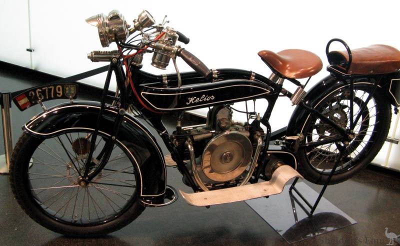 Designed by Karl Rühmer, the Helios used the 492 cc M2B15 Bayern longitudinal HO twin which was also fitted to the Victoria.