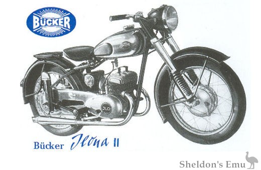 Postwar, a Bücker machine reportedly won the German Grand Prix of 1949. Production machines included the JLO 250cc Ilona, shortly followed by the twin-cylinder 250cc Ilona II. Few examples of the Ilona were built.