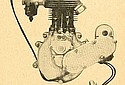 The engine, which weighs about 54 lb., is beautifully made, and is provided with a gear-driven magneto The mainshaft is provided with a double row of Skefko self-aligning ball bearings, and an internal exhaust valve lifter is adopted. The valve rockers are fitted with roller ends, thus minimising the friction to as large an extent as possible, and the tappet bearings run in long bushes. The distance pieces below the valve guides are drilled at the sides, so as to keep the springs from contact with the cylinder, thus keeping them cool and adding to their life, while in the latest models adjustable tappets are fitted. Great care has been taken with the design B of the engine, oil holes being pro vided in all bearings to ensure perfect lubrication. The latest models of this engine will be provided with a chain-driven magneto.