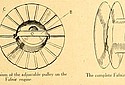 The Fafnir adjustable pulley is quite an interesting piece of work The method of operating is clearly shown in the accompanying illustration. The knob A is attached to a spindle holding the bar B, and when pulled out allows the pulley to be turned till, on the knob being released, it again engages with the slot C. The pulley therefore can be operated and the gear ratio raised or lowered without the aid of tools, a point which should be much appreciated by the average rider.