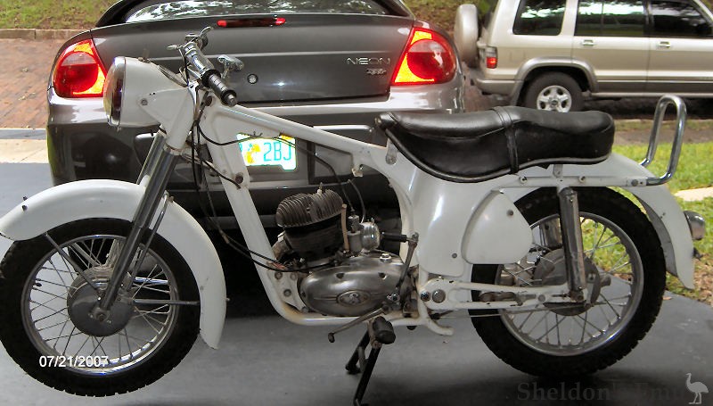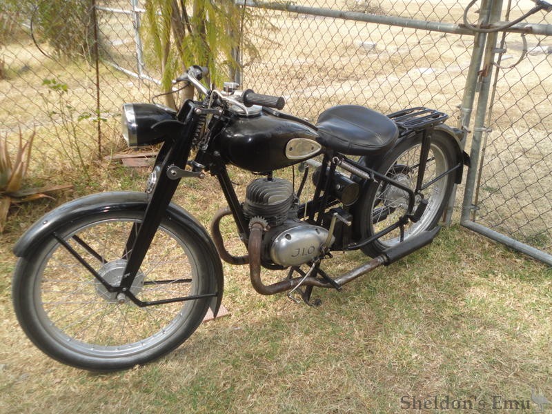 A twin was built using the JLO engine. About six were produced in 1954/55, one of which had swing-arm rear suspension and 16" wheels.