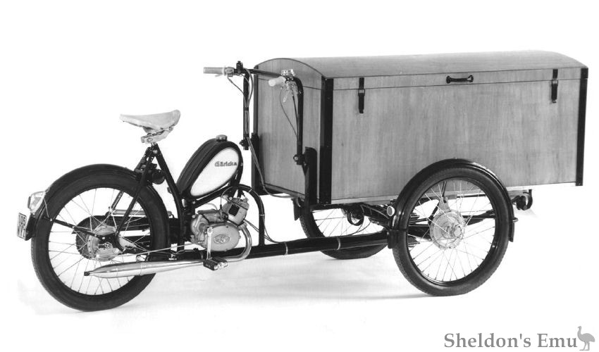 1949-1960: built motorcycles with two-stroke ILO and Sachs engines up to 197cc. Some of the ILO-engined machines may have been rebadged by the Swedish Monark concern. They also produced transport dreirad (tricycles) with Sachs 50cc and 97cc engines until 1959.