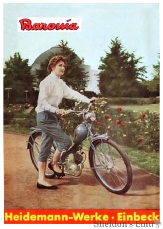 Around 1954 they introduced the Baronia brand, under the company name Baronia Fahrzeugfabrik. These mopeds were also powered by Sachs and JLO and were built until 1955. Another brand name they used was Dirigent, probably only used for bicycles.