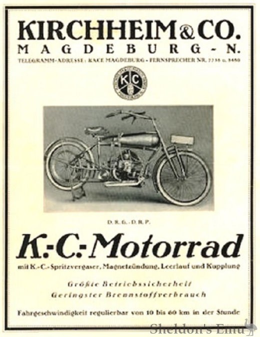 Founded by Karl Kirchheim in 1920/1921 in partnership with Ferdinand Schlegel. The company went public in 1923, but with the country ravaged by hyperinflation, the IPO failed in 1924. Schlegel left the company in October that year, and there is no further evidence of motorcycle manufacture.