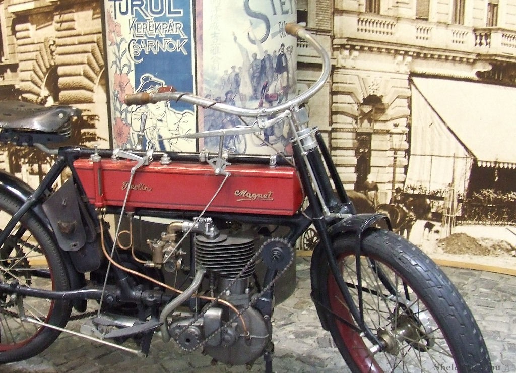 Dreirad (three-wheeler) models were also built in both passenger and commercial forms, some with their own 3.25 h.p four-stroke engines which had friction clutch and chain drive. In 1909 a machine named the Magnet-Wagen was offered, with a 498cc V-twin mounted above the front wheel.