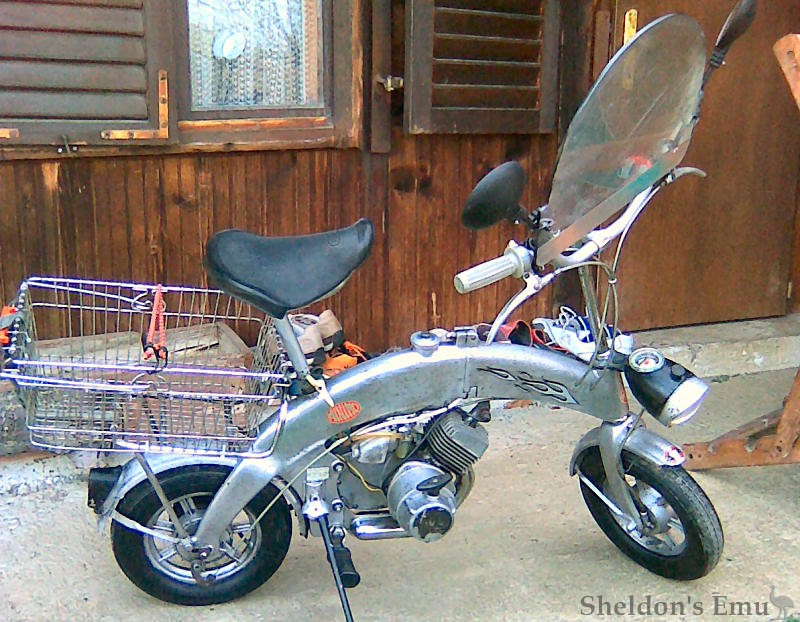 Willi Poppe was the owner of a foundry in Kiel. Keen on watersports, he developed the minibike for boat owners to give them transportation when in port. Powered by JLO engines of 34 and 47cc, the folding minibike proved quite popular, and was even used, it is claimed, by glider pilots so that they could ride to the nearest phonebox after outlanding. A Trump supporter would probably believe this.